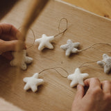 Create a cosy autumn and winter atmosphere in your home with our adorable set of hanging felt wool stars. Lovingly handmade from sustainably sourced wool, these stars can be reused year after year, making them perfect for decorating your space, whether hanging from branches or added to your place settings. This charming set brings a natural touch to your festive décor.