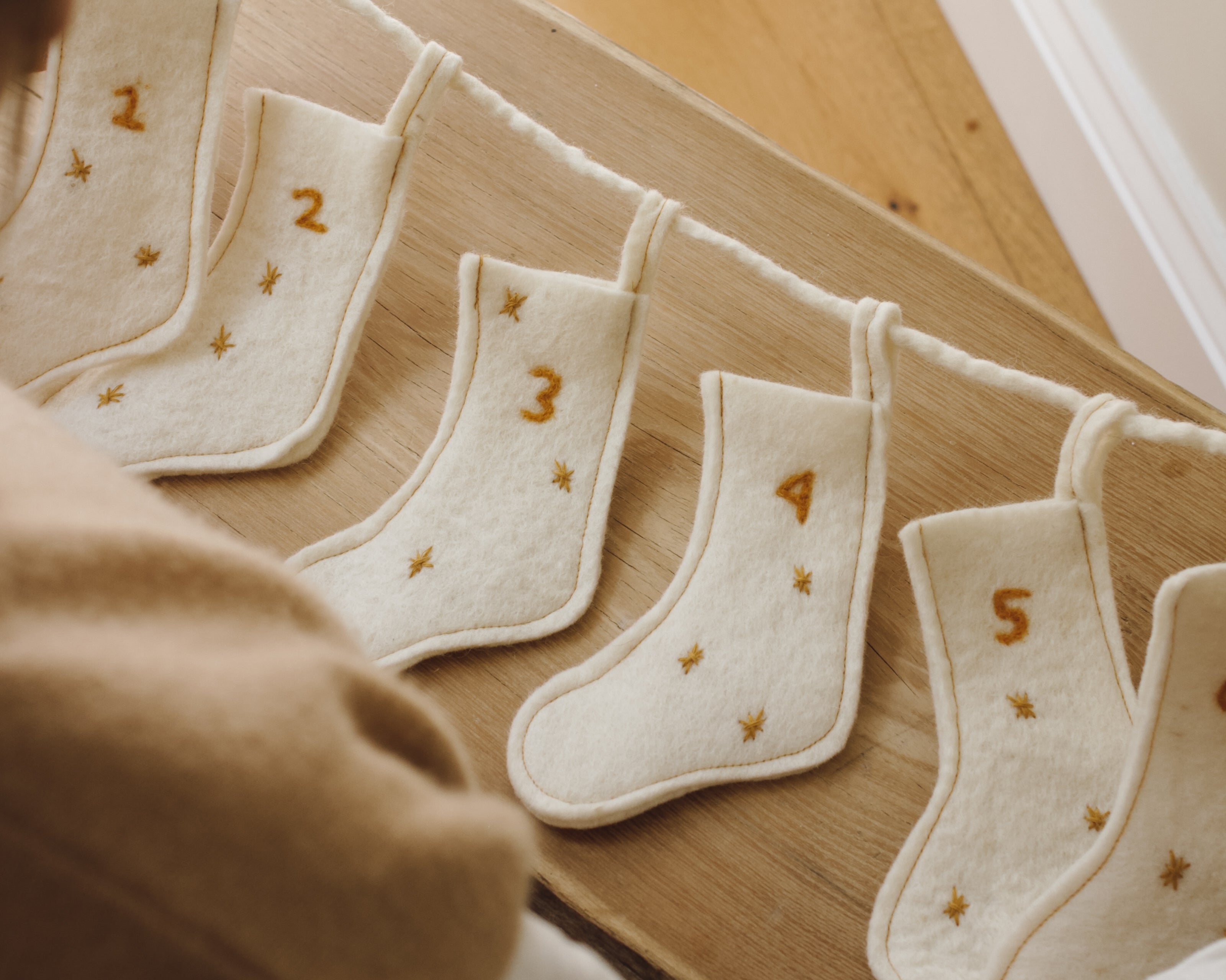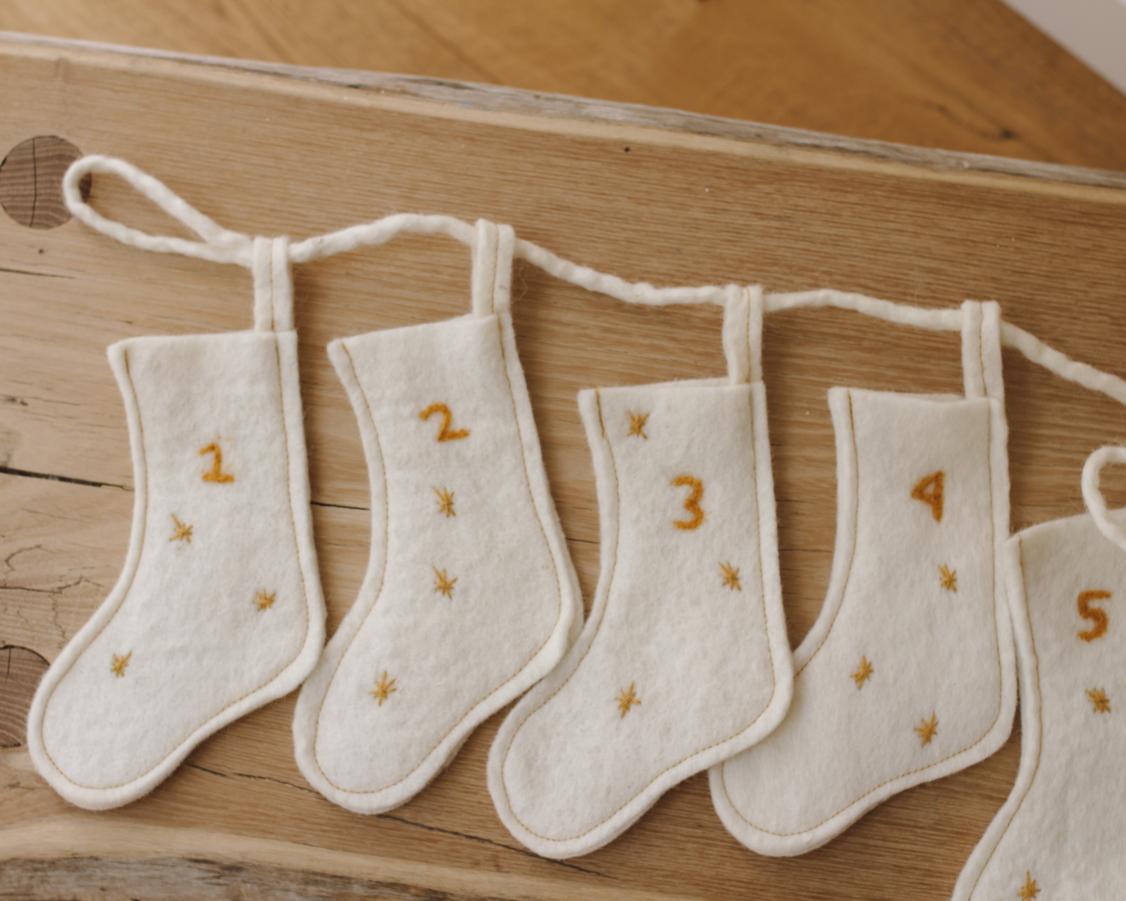 Create a cosy autumn and winter setting in your home with our charming Advent Garland, featuring 25 little stockings. Lovingly handmade from sustainably sourced wool, these adorable stockings can be reused year after year and make a perfect addition to your holiday décor. Whether hung on the wall or added to place settings, this garland brings warmth and festive charm to any space.