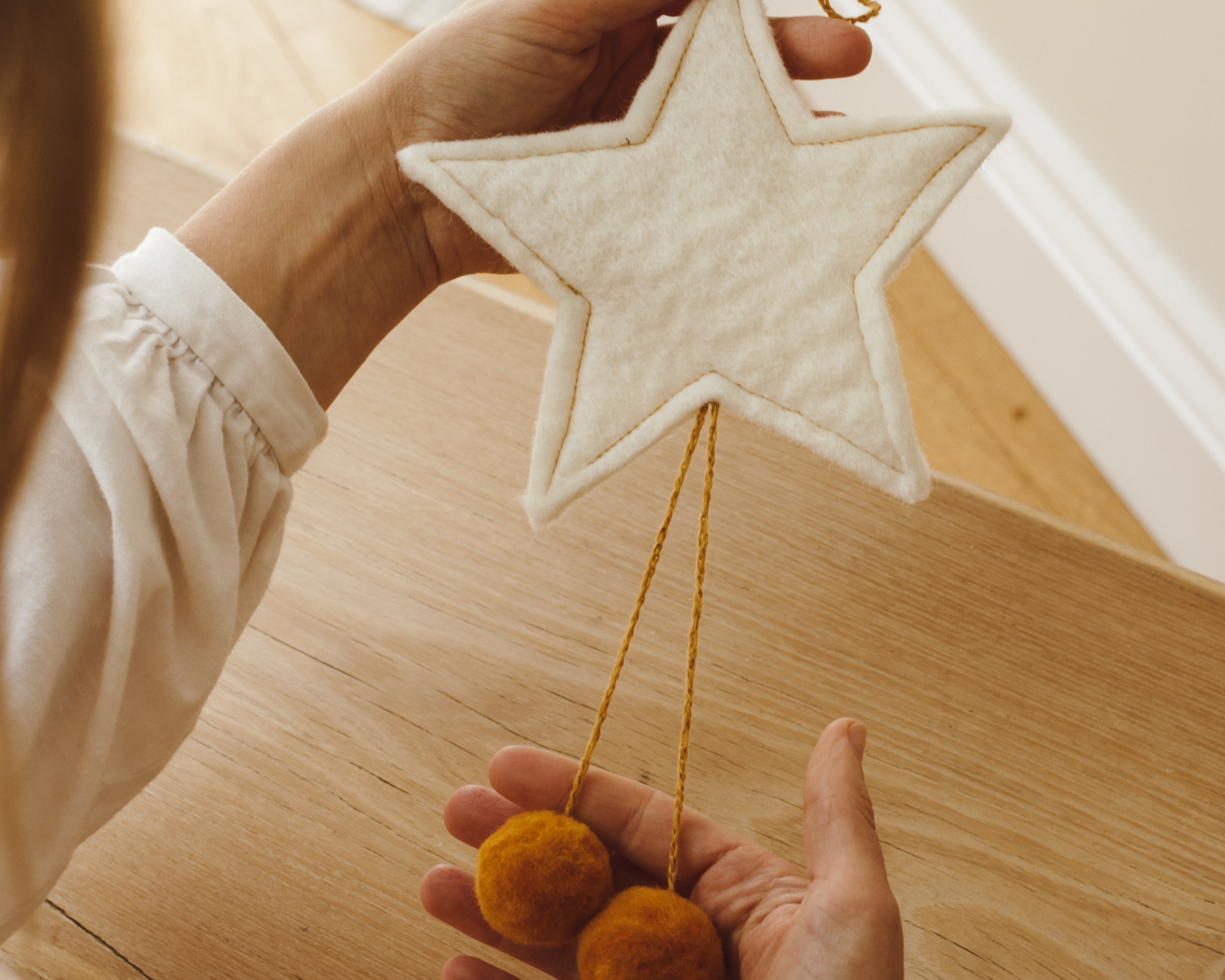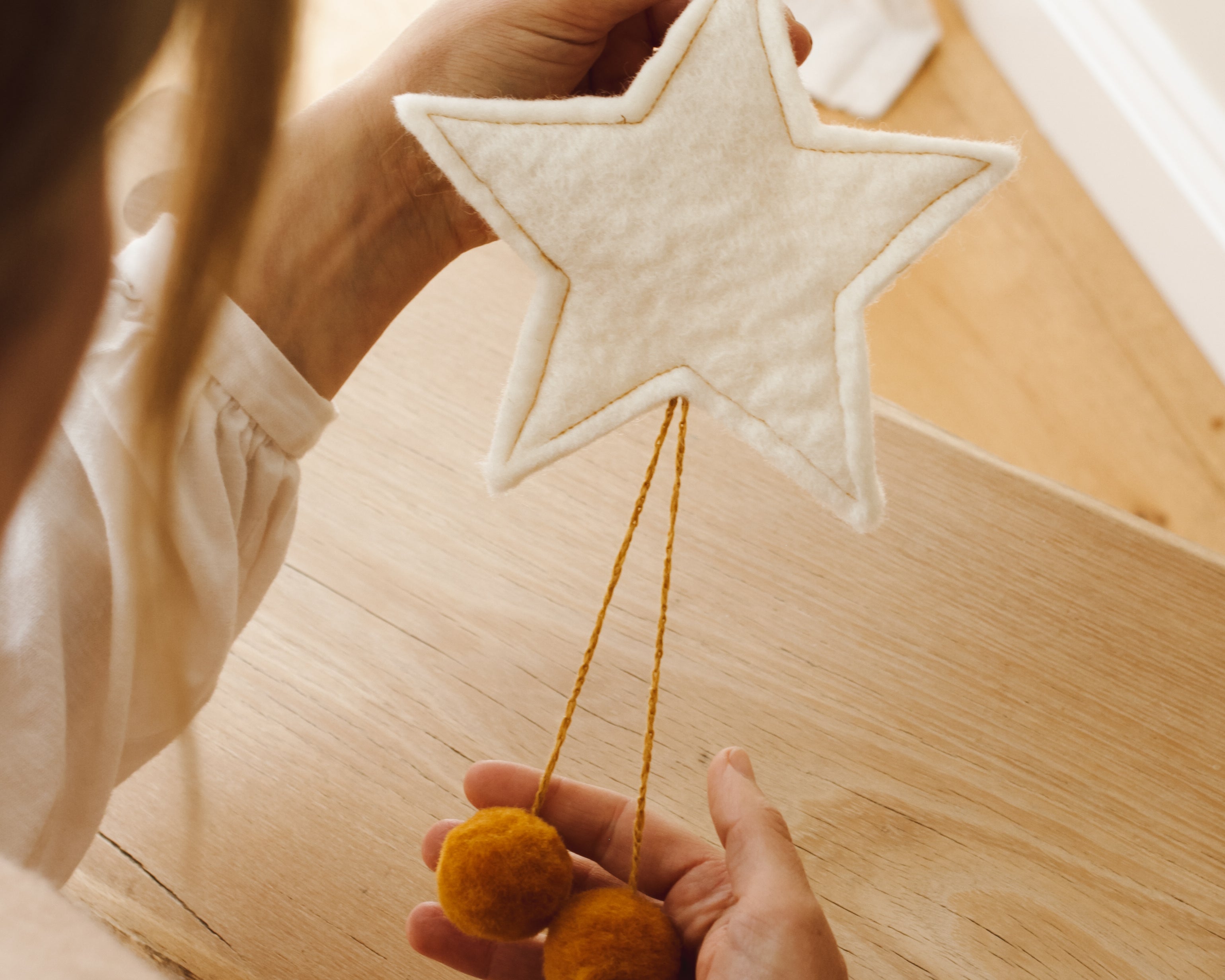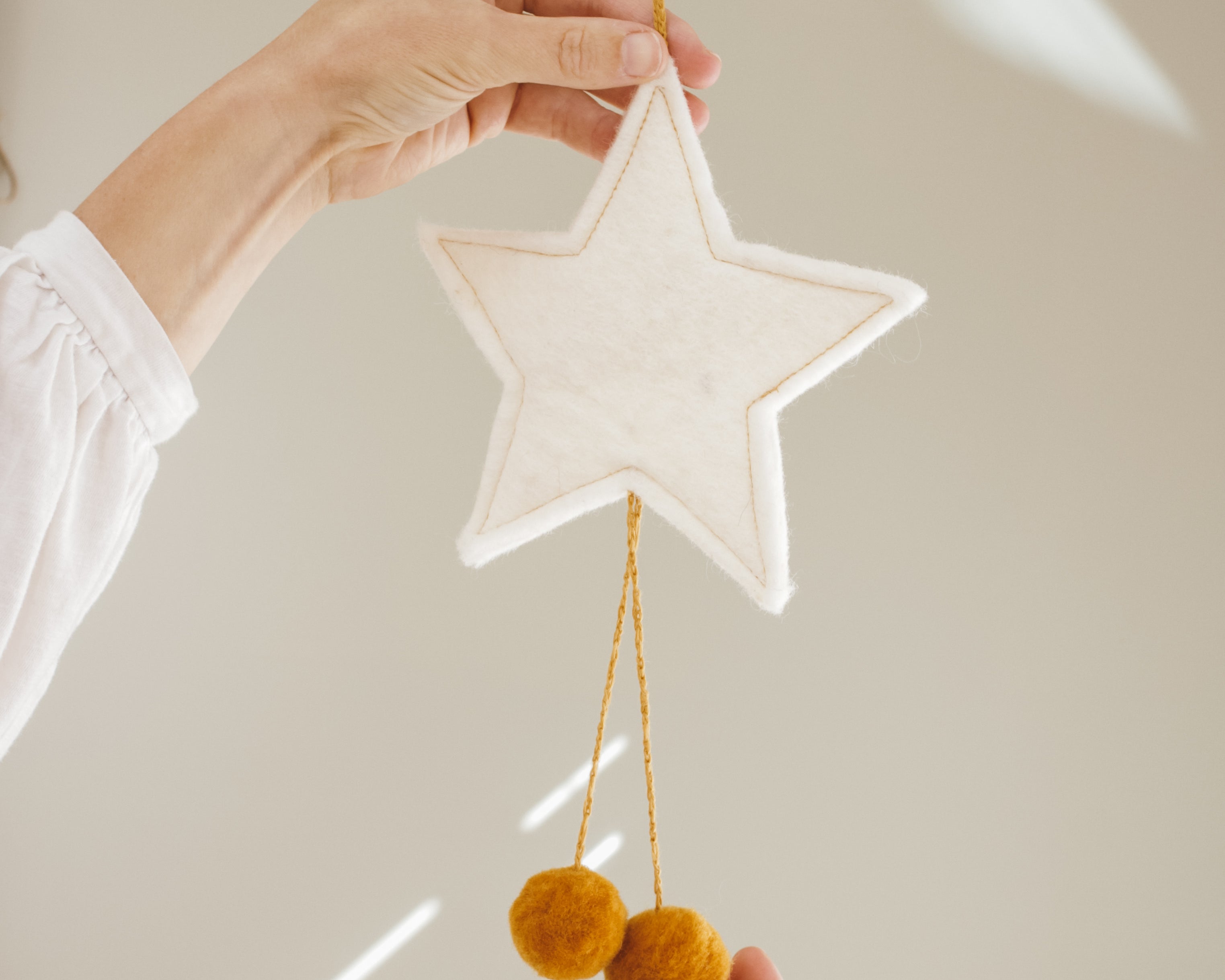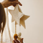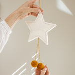 Add a touch of whimsy to your décor with this charming natural wool star adorned with playful pompoms. Lovingly handmade from sustainably sourced wool, this delightful piece is perfect for adding a cosy, whimsical touch to your space. Whether used for holiday decorating or year-round charm, this wool star will bring warmth and joy to your home.