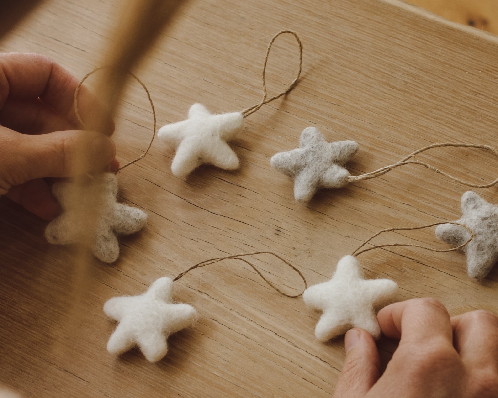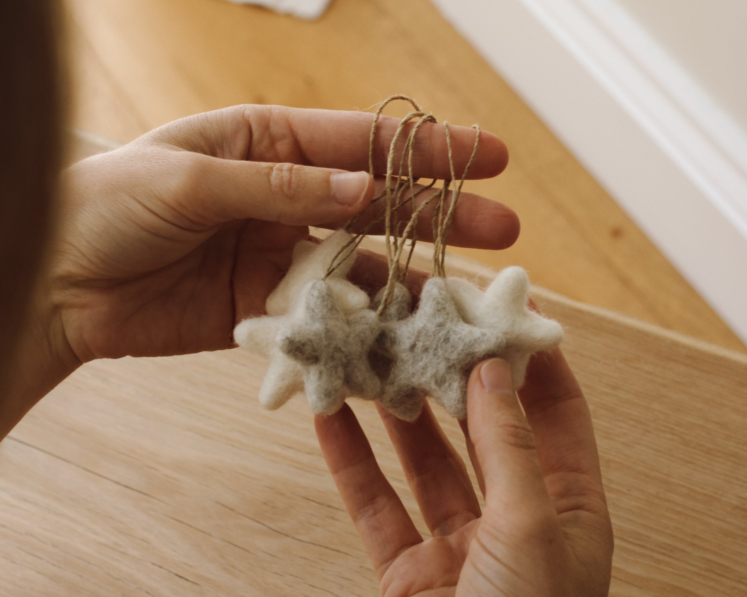 Create a cosy autumn and winter atmosphere in your home with our adorable set of hanging felt wool stars. Lovingly handmade from sustainably sourced wool, these stars can be reused year after year, making them perfect for decorating your space, whether hanging from branches or added to your place settings. This charming set brings a natural touch to your festive décor.
